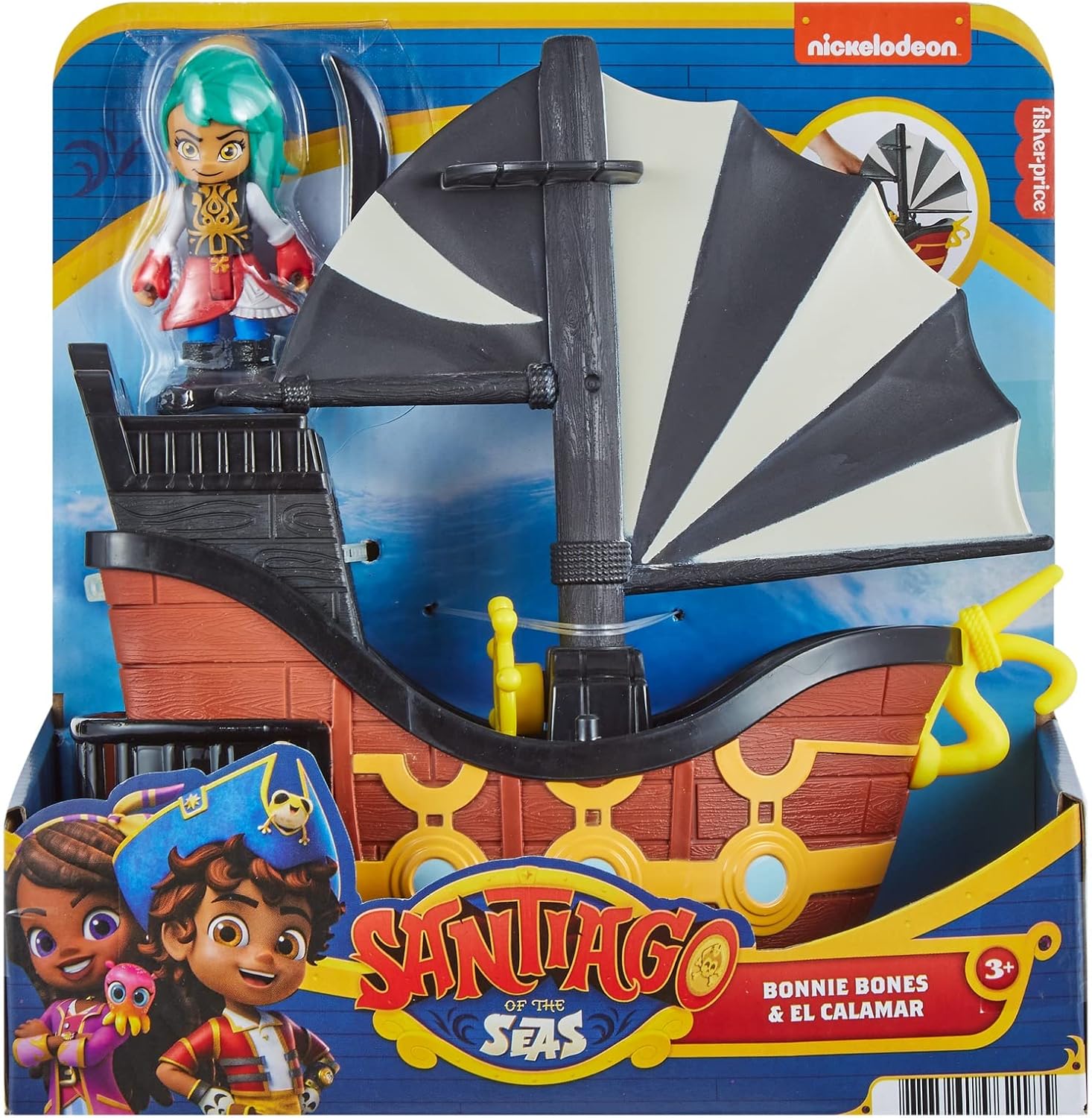 - Kids can recreate the high-seas action of Nickelodeon's Santiago of the Seas with this figure and vehicle set featuring Bonnie Bones and her pirate ship, El Calamar