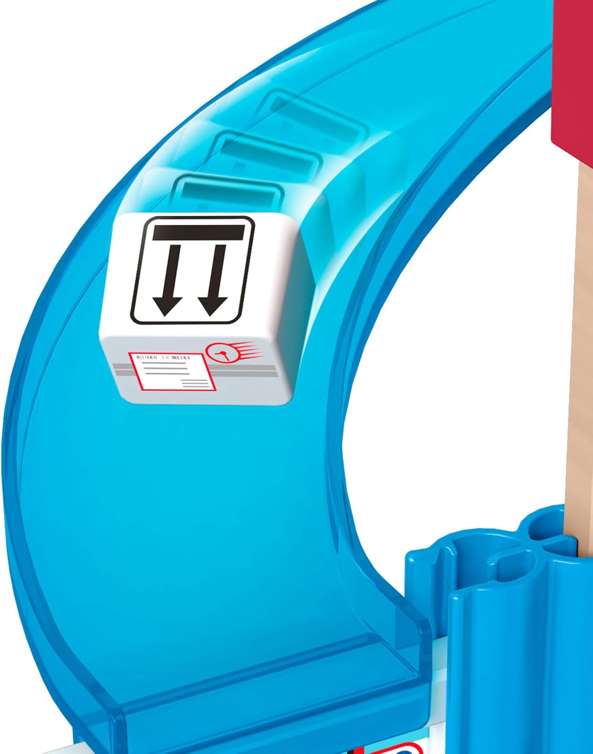 - 40+ play pieces, including wooden track pieces, links, 2 characters, wooden crates, letters & boxes