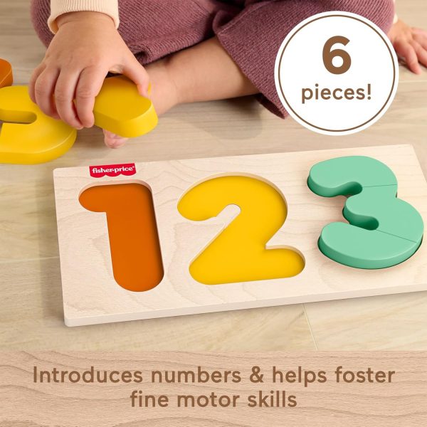 Fisher-Price Wood Montessori Toy 1-2-3 Puzzle, 7-Piece Wooden Learning Activity with Expert Play Tips for Toddlers & Kids Ages 2+ Years