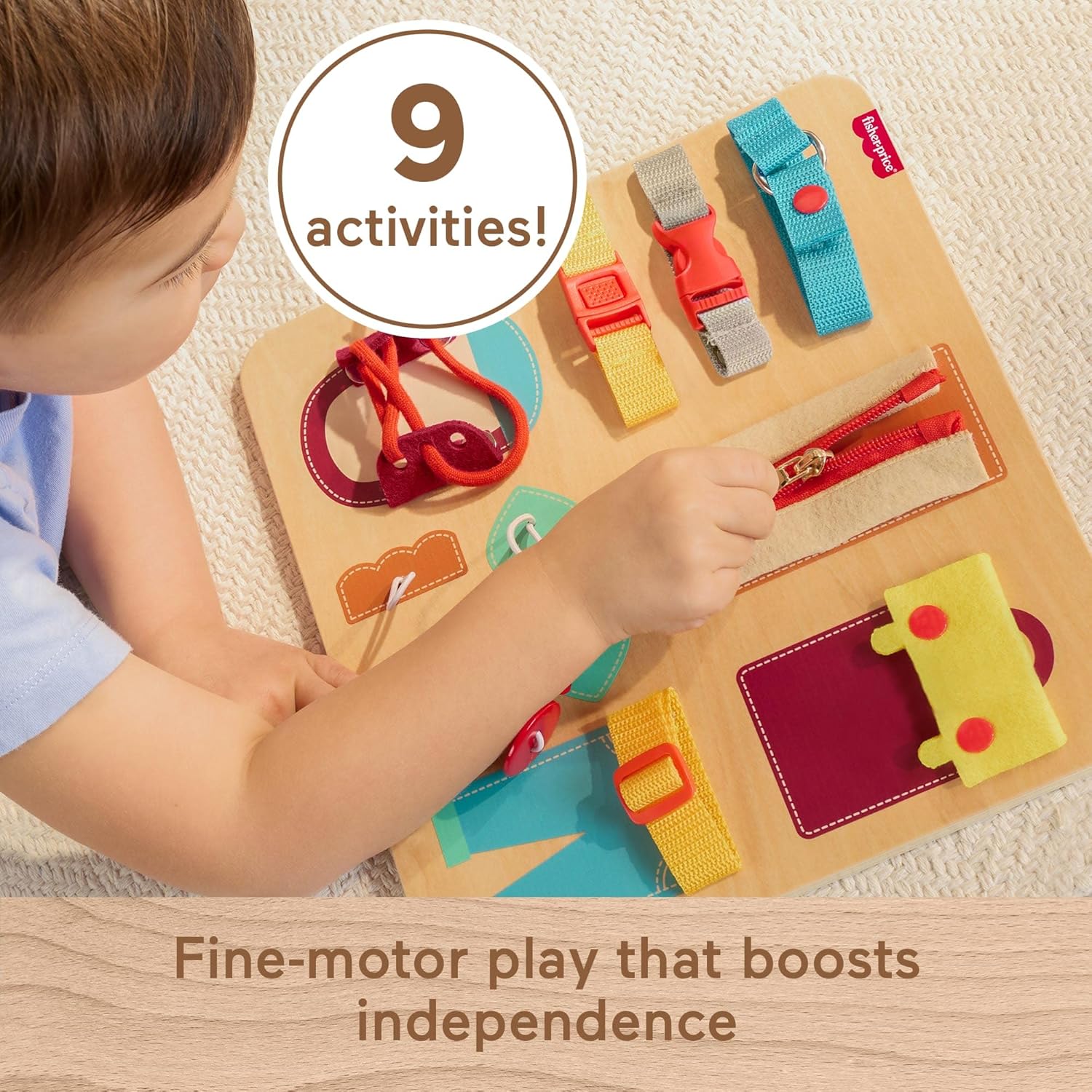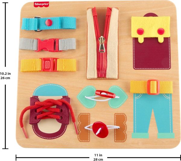 Fisher-Price Wood Montessori Toy Dressing Board, Early Life Skills Learning Busy Activity for Preschool Kids Ages 3+ Years