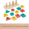 - Wood shape sorting toy for toddler-friendly stacking play