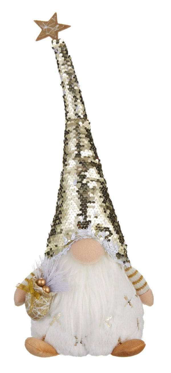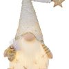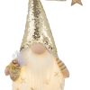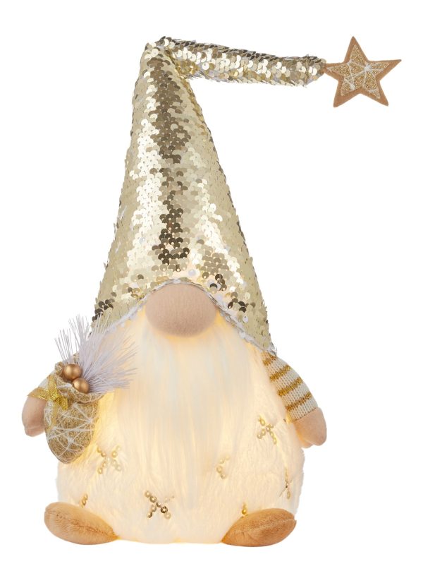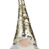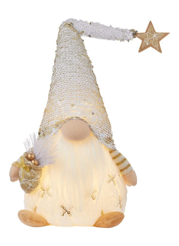 FOR LIVING Christmas Decoration Pre-Lit Sitting Gnome with White & Gold Sequin Flip Hat, 19-in