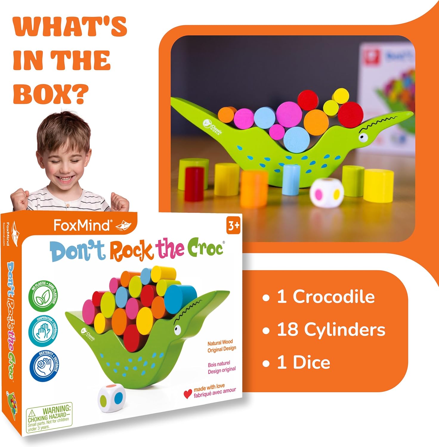Foxmind Games Don’t Rock The Croc, Toddler Boy Girl Games, Kids Games 3-5, Multiplayer 3 Year Old Board Games for Family Fun
