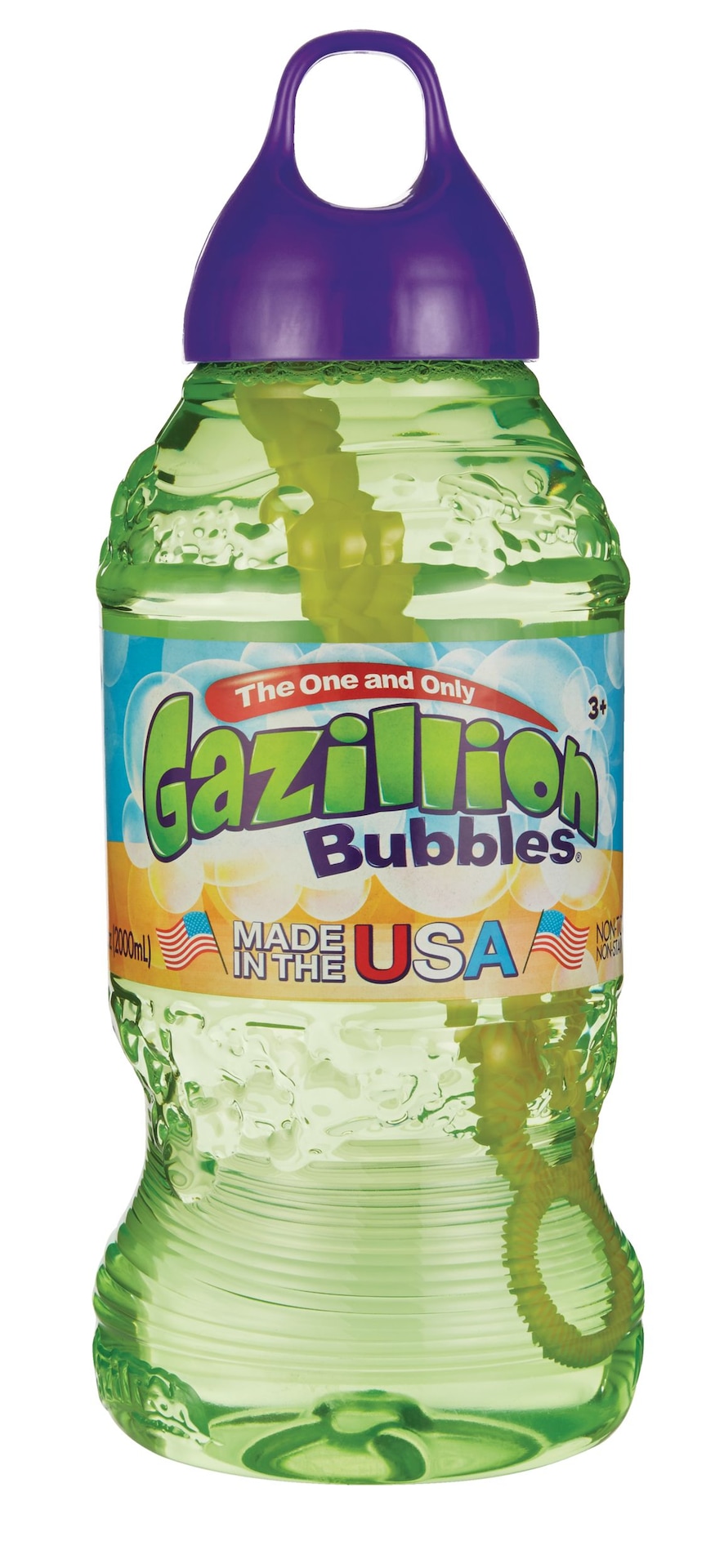 Gazillion Kids’ Giant Bubble Blowing Solution with Wand, Clear, 2-L, Ages 3+, for Summer/Backyard Activities