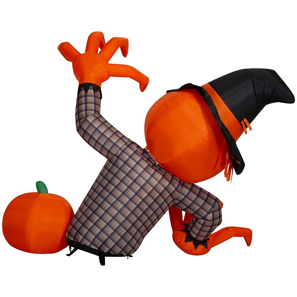 Create a spooky atmosphere this Halloween with the Gemmy Air Blown Inflatable Scarecrow Ground Breaker Decoration. This eye-catching decoration features a scarecrow with a rotating head and LED lights, perfect for adding a touch of fright to your yard. Easy to set up, it will make your home the talk of the neighbourhood.