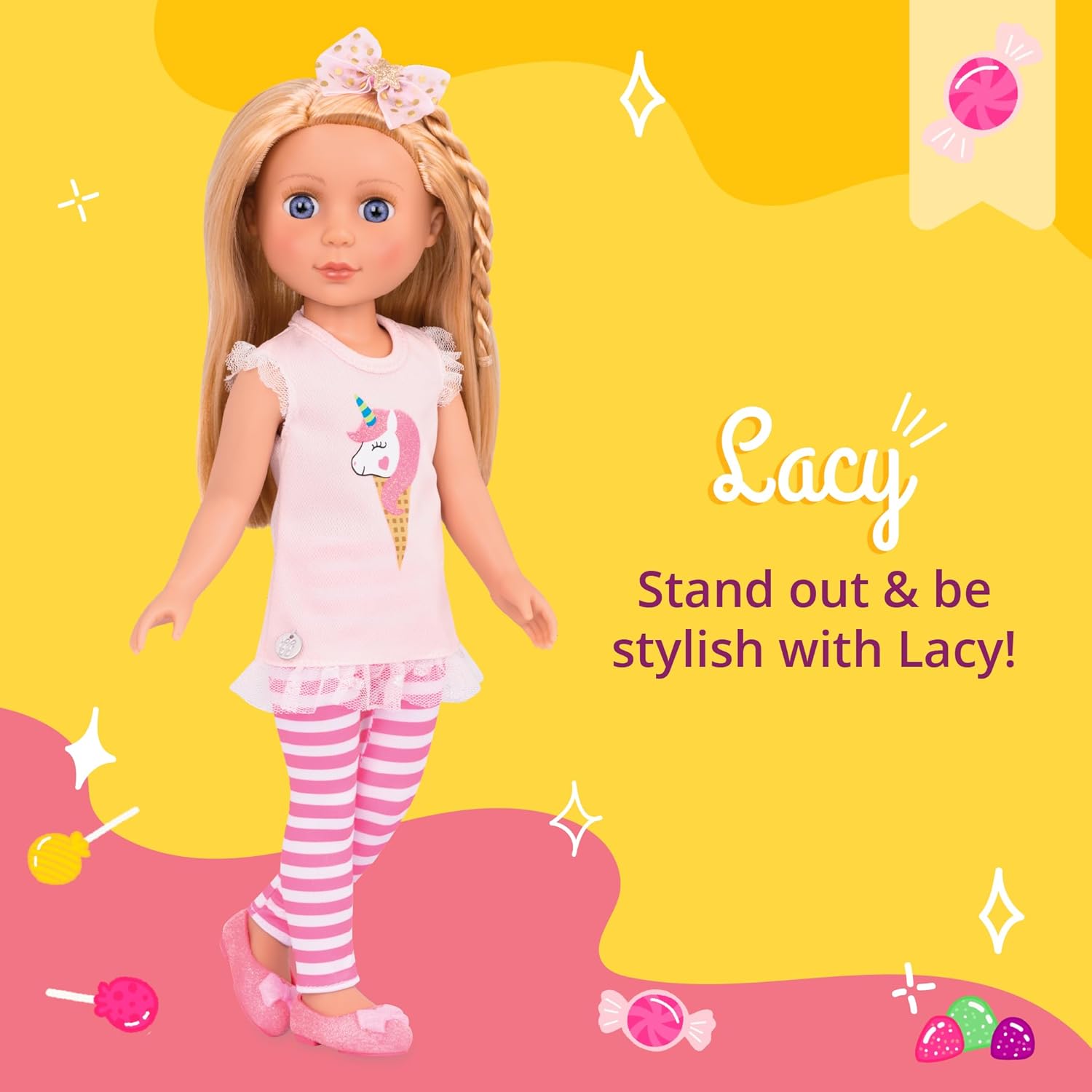 Glitter Girls – 14-Inch Fashion Doll – Blonde Hair & Blue Eyes – Pink Tunic, Striped Leggings, Hair Bow & Ballet Shoes – Dolls For 3+ Years Year Old Girls – Lacy