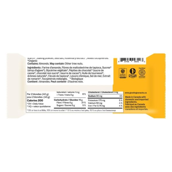 Our Chocolate Chip Blondies come perfectly portioned, studded with real dark chocolate chips and soft-baked to a golden finish. With 5g of sugar, 5g of protein, and 6g of fibre, our Blondies taste like a treat, but with ingredients this good, you can feel great about enjoying them any time of day.