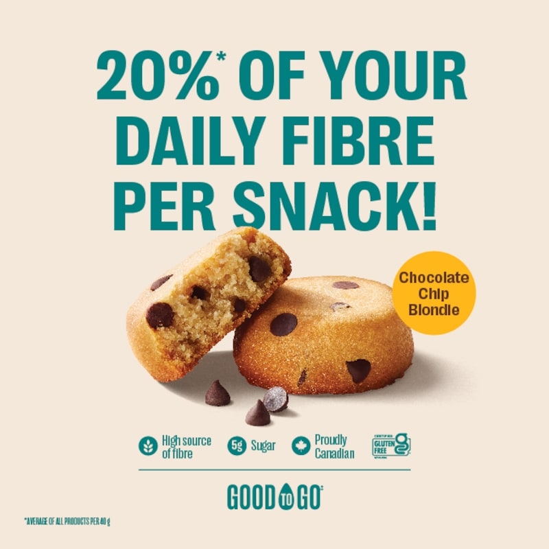 Our Chocolate Chip Blondies come perfectly portioned, studded with real dark chocolate chips and soft-baked to a golden finish. With 5g of sugar, 5g of protein, and 6g of fibre, our Blondies taste like a treat, but with ingredients this good, you can feel great about enjoying them any time of day.