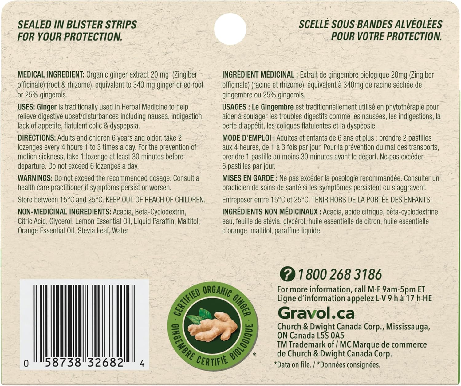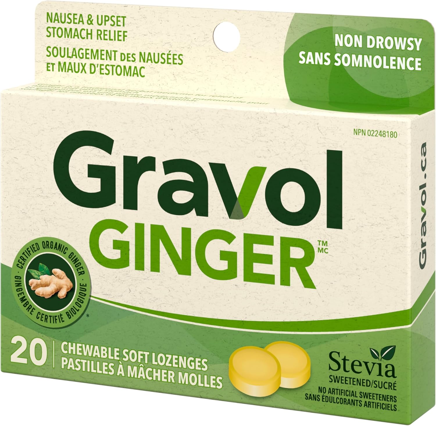 - NAUSEA, VOMIT & UPSET STOMACH RELIEF: A natural health product, each Gravol Ginger chewable Lozenge contains therapeutic levels of Certified Organic Ginger for the treatment and prevention of nausea & vomiting