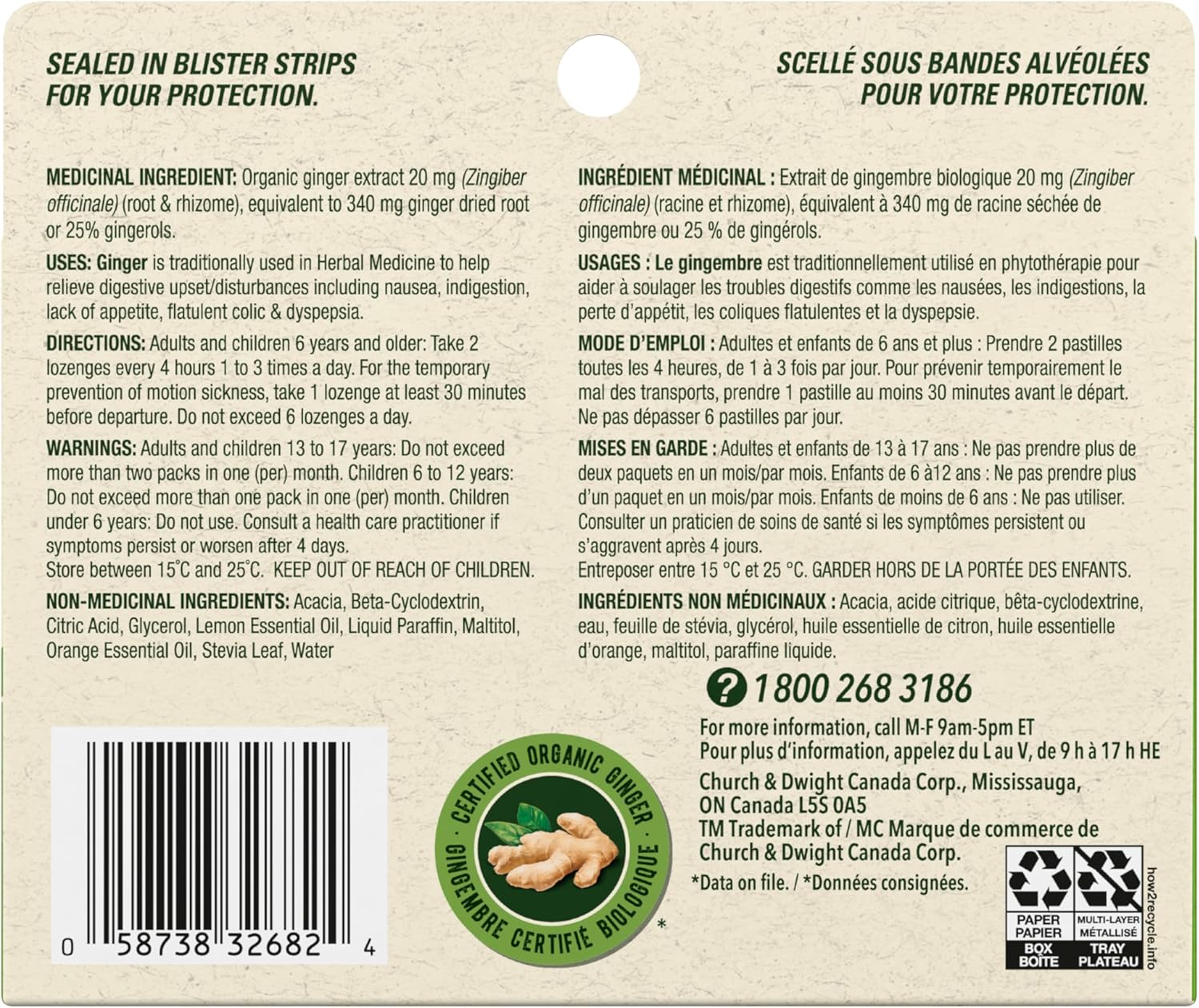 Gravol Ginger Chewable Lozenges provide effective, non-drowsy relief of nausea, vomiting, and upset stomach using therapeutic levels of Certified Organic Ginger. Ideal for indigestion, motion sickness, and nausea relief, these great-tasting lozenges are soft, easy to chew, and require no water. Made with naturally sourced ingredients and free from added sugar, gluten, and artificial colours, Gravol is Canada’s #1 doctor-recommended* and #1 Brand in Anti-Nausea Category*. TRUST GRAVOL! *Data on file, 2024