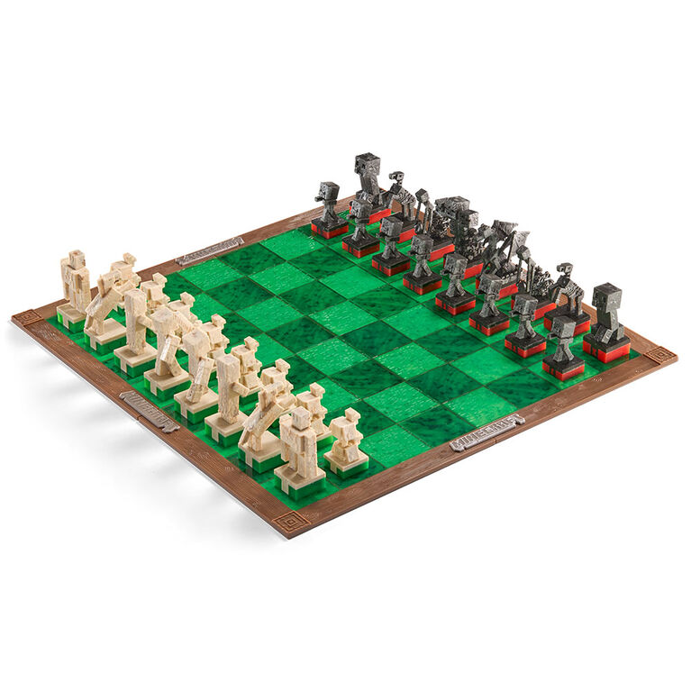 If you’re always thinking several moves ahead, show off your strategic gaming skills in real life with this Minecraft chess set. Will you play as the friendly Overworld characters or take the side of the dark hostile mobs? Elevate your game with this unique chess set that combines the strategic world of chess and the online world of Minecraft for players from noobs to grandmasters. The 18″ square chess board features a wood-like frame around a playing surface of ‘grass’ in textured shades of green, surrounded by Minecraft logos in a metallic finish, suitable for the game of kings (and Steves). This set includes 32 game pieces with textures and finishes that resemble marbled stone, obsidian, redstone or emerald. Like most things in Minecraft, some assembly is required! The board arrives as four interlocking quadrants which can be easily disassembled for more convenient storage. For Minecraft fans ages 8+.
