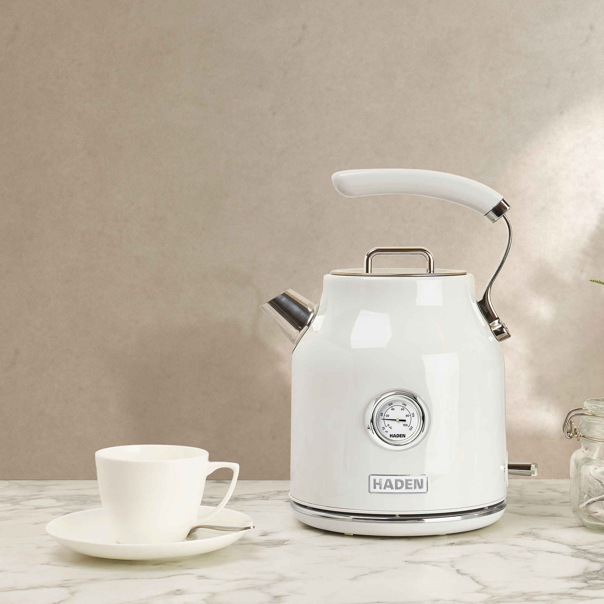 Elevate your kitchen aesthetics with the Haden Dorset 1.7 liters stainless steel electric tea kettle. Embracing a chic retro design, this kettle not only adds a vibrant touch to your kitchen but also revolutionizes your tea or coffee ritual. Whether you're a tea connoisseur or a coffee enthusiast, indulge in the luxury of a perfectly brewed beverage with the Haden Dorset kettle by your side.