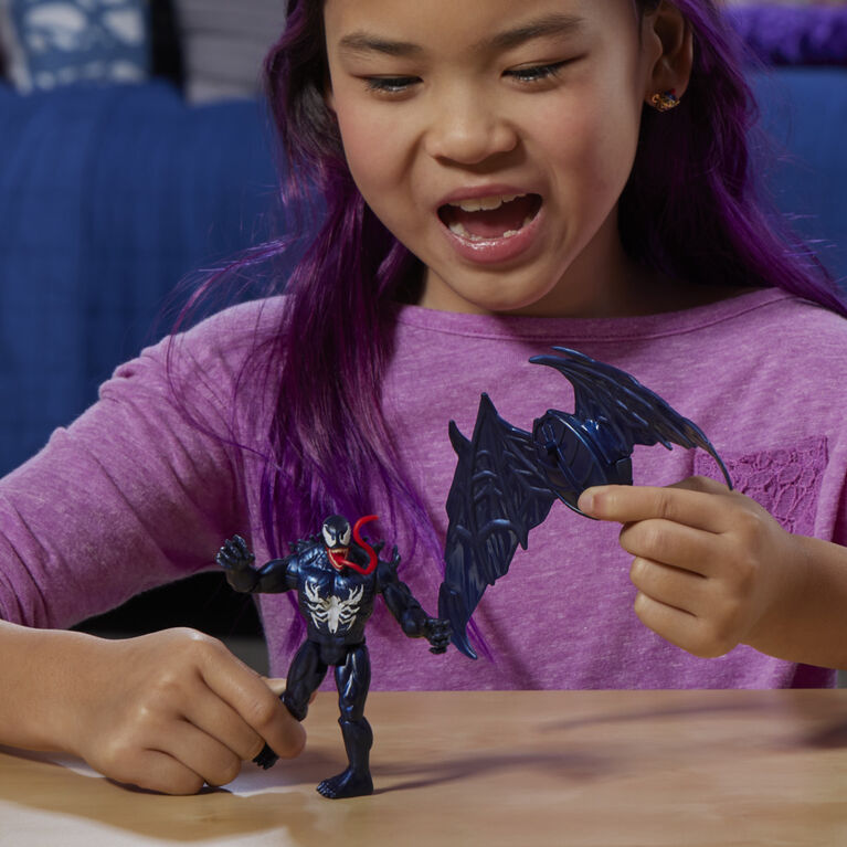 Kids can imagine unleashing Venomized web-slinging adventures and battles with their favorite Spider-Man heroes and villains! This collectible Marvel deluxe Venom action figure is a part of Hasbro’s exclusive Epic World of Action series and features classic black-and-white suit design & deco, as well as poseable limbs. VenomVersus deluxe toys also include multiple Venomized accessories for symbiote web-slinging adventures. This 4-inch-scale (10cm) figure can’t be missed and will be the perfect gift for kids or addition to any collection of Super Hero figures! Look for more Epic World of Action toys for boys and girls to collect, including figures, toy playsets, and vehicles! (Each sold separately. Subject to availability.) Copyright MARVEL. All trademarks and registered trademarks are the property of their respective owners. HASBRO and all related trademarks and logos are trademarks of Hasbro, Inc.