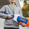 Surprise everyone as you unleash a drenching blast of water from the Nerf Super Soaker Rainstorm water blaster! This Super Soaker blaster is designed with a barrel that streams a downpour of water to soak the competition. Place the front of the blaster in water and pull the plunger handle back to fill the tank, then push the handle forward to release a soaking surf of fun. It’s easy to use, so kids, teens, and adults can all blast into outdoor water battles. Get outside, get active, and get soaked! Tank capacity is 22 fluid ounces (650 milliliters). The Nerf Super Soaker brand has been pouring on the fun since 1989 and continues to drench everyone with water-blasting mayhem! Head outdoors for extreme soakage with Nerf Super Soaker blasters!
