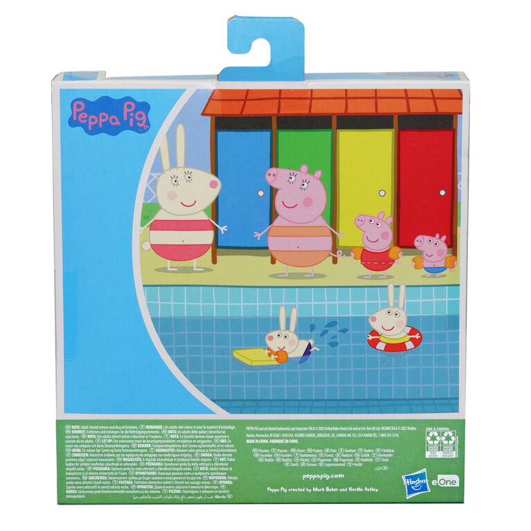 This Swim Time Figure 6-Pack toy is inspired by Peppa Pig, her family, and friends, all popular characters from Entertainment One UK’s acclaimed animated series, Peppa Pig. Kids ages 3 and up can act out their own swim-time adventures or recreate their favorites from the show. Will Peppa and Rebecca help teach their little brothers how to swim? Under their mummies’ watchful eyes, maybe! 2021 ABD Ltd/Ent. One UK Ltd. Hasbro and all related terms are trademarks of Hasbro.