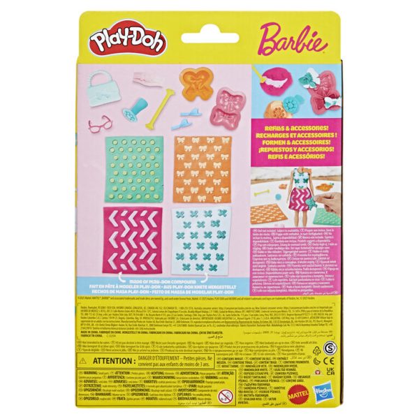 Includes 2 bow stampers, double-sided stamper, flower stamper, 1 pair of shoes, belt, glasses, purse, and 4 Play-Doh Pattern Sheets (9.84 oz/278.9 g of modeling compound).
