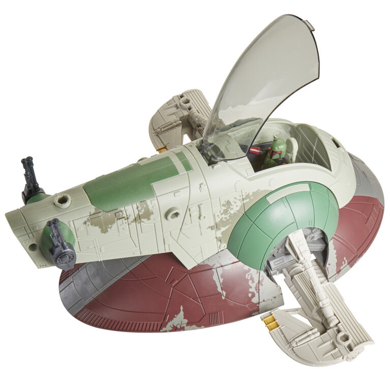 With his customized Mandalorian armor, deadly weaponry, and silent demeanor, Boba Fett was one of the most feared bounty hunters in the galaxy. His inherited starship has a reputation earned from decades of successfully capturing fugitives.