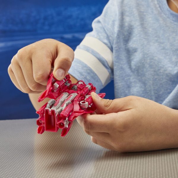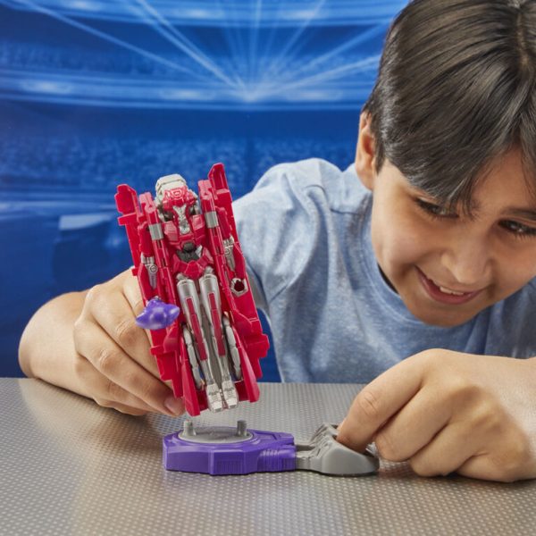 Experience the epic origins of legendary Transformers robots with these Transformers One Battling Robots action figures! This 4.5-inch (11.5 cm) Elita-1 figure converts from robot to Cybertronian motorcycle mode in 3 steps, with simple conversion perfect for Transformers fans age 6 and up. Place the action figure on the Battle Base and slide the finger slots for cool action moves! The figure has articulated head, arms, and legs for awesome action poses. Includes a Battle Base and a sword that attaches in robot mode. This Robot Battlers action figure is inspired by an iconic character from the Transformers movie, Transformers One. Movie-inspired Interactive toys make cool gifts for boys and girls ages 6 and up. Transformers One is the untold origin story of Optimus Prime and Megatron, once friends bonded like brothers, who changed the fate of Cybertron forever. TRANSFORMERS and HASBRO and all related trademarks and logos are trademarks of Hasbro, Inc. 2024 Hasbro. 2024 Paramount Pictures Corporation. All Rights Reserved.