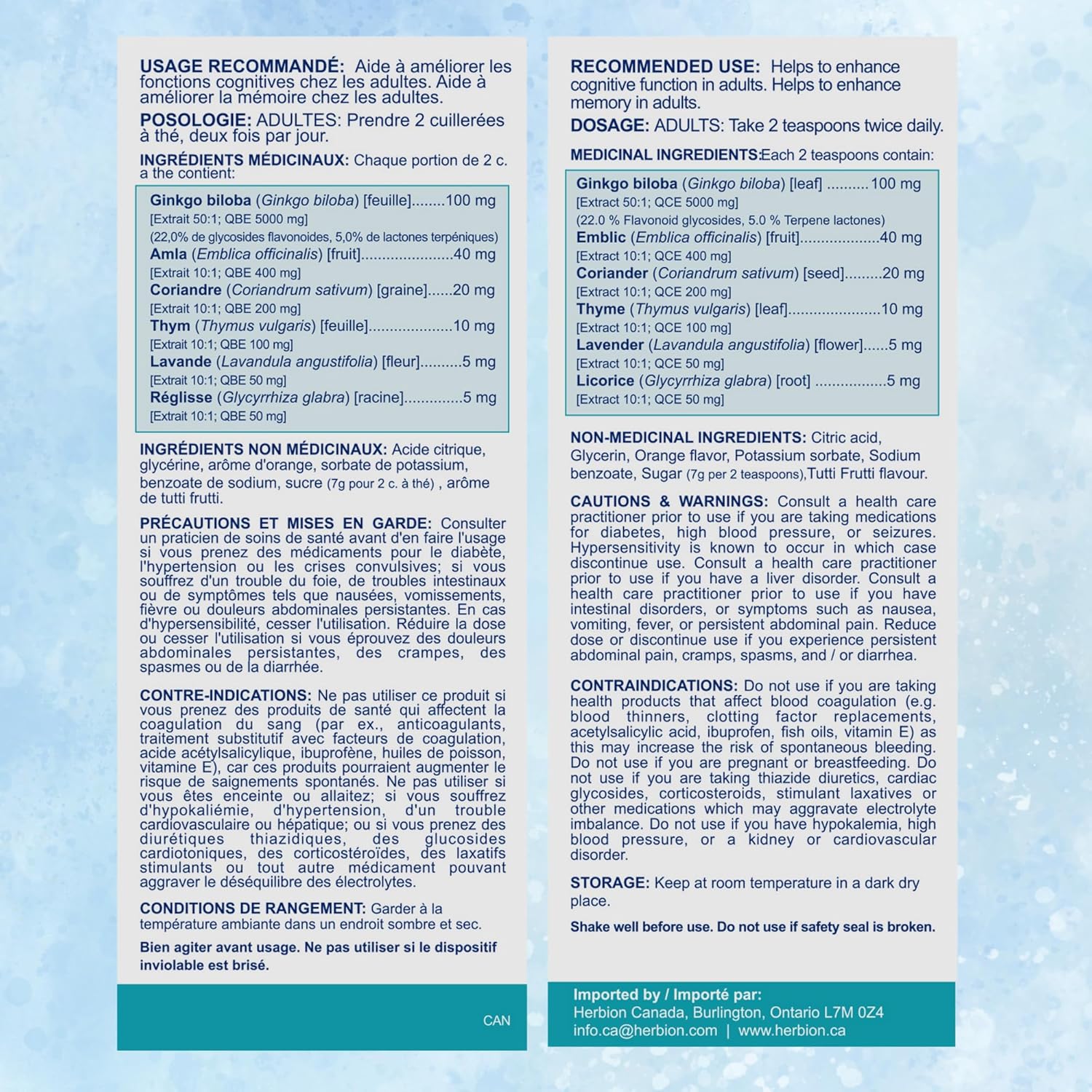 - HERBAL FORMULA: Our cognitive support liquid contains brain-boosting herbal extracts such as Ginkgo biloba, Emblic, Coriander, Thyme, Lavender, and Licorice.