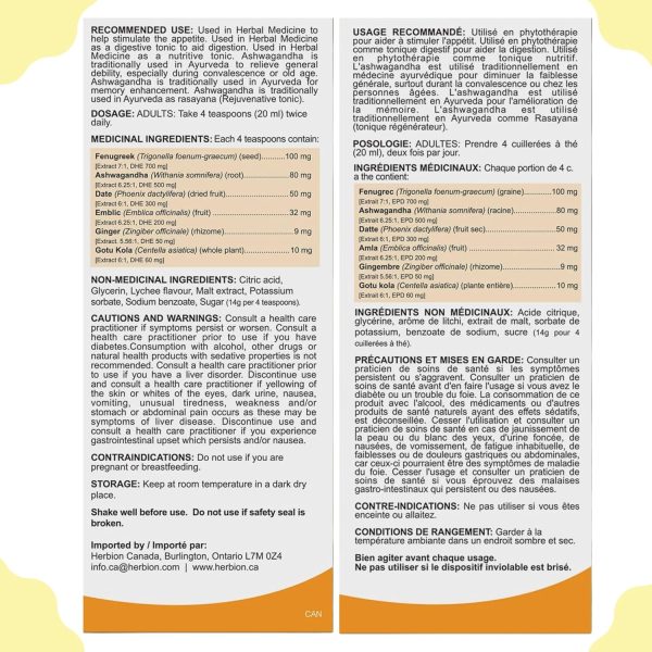 - HERBAL INGREDIENT BLEND: Our syrup contains a blend of six herbal ingredients, including Fenugreek, Ashwagandha, Date, Emblic, Ginger, and Gotu Kola.