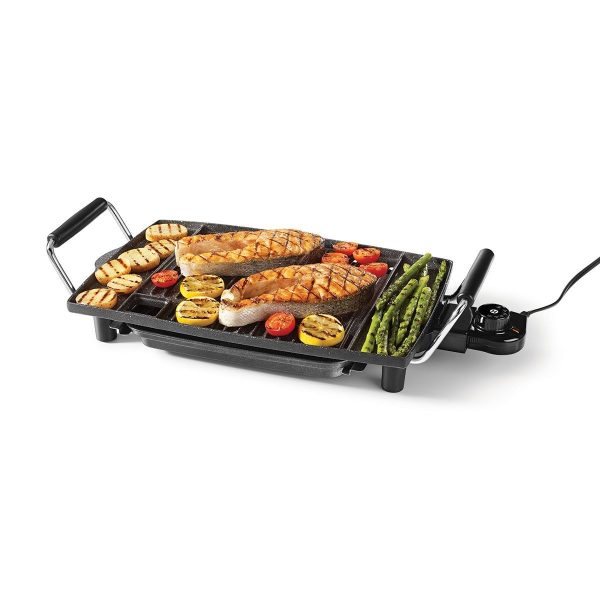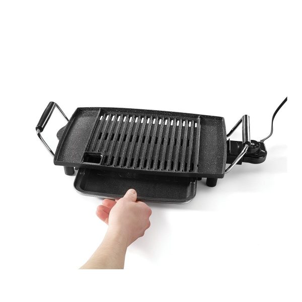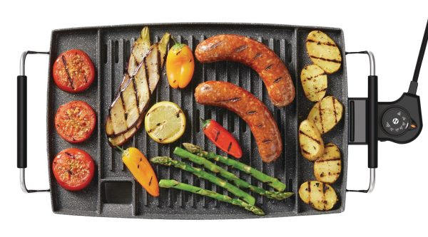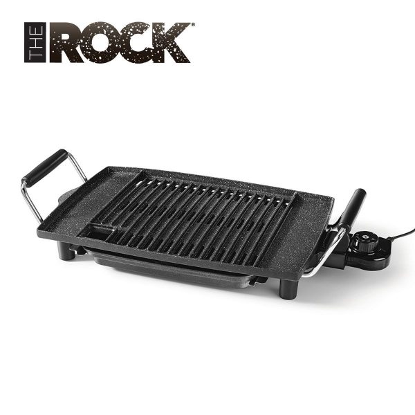 The Heritage The Rock Indoor Non-Stick Electric Smokeless BBQ Grill is the perfect way to prepare delicious BBQ indoors without charcoal or gas. Its patented non-stick Rock technology allows for effortless food release, while the drip tray captures excess oil and grease to reduce smoke. With a spacious cooking surface, this indoor BBQ grill features a durable cast aluminum plate that evenly distributes heat. Adjust the temperature with ease and when finished cooking, simply remove the dishwasher-safe drip tray and plate for quick cleanup.