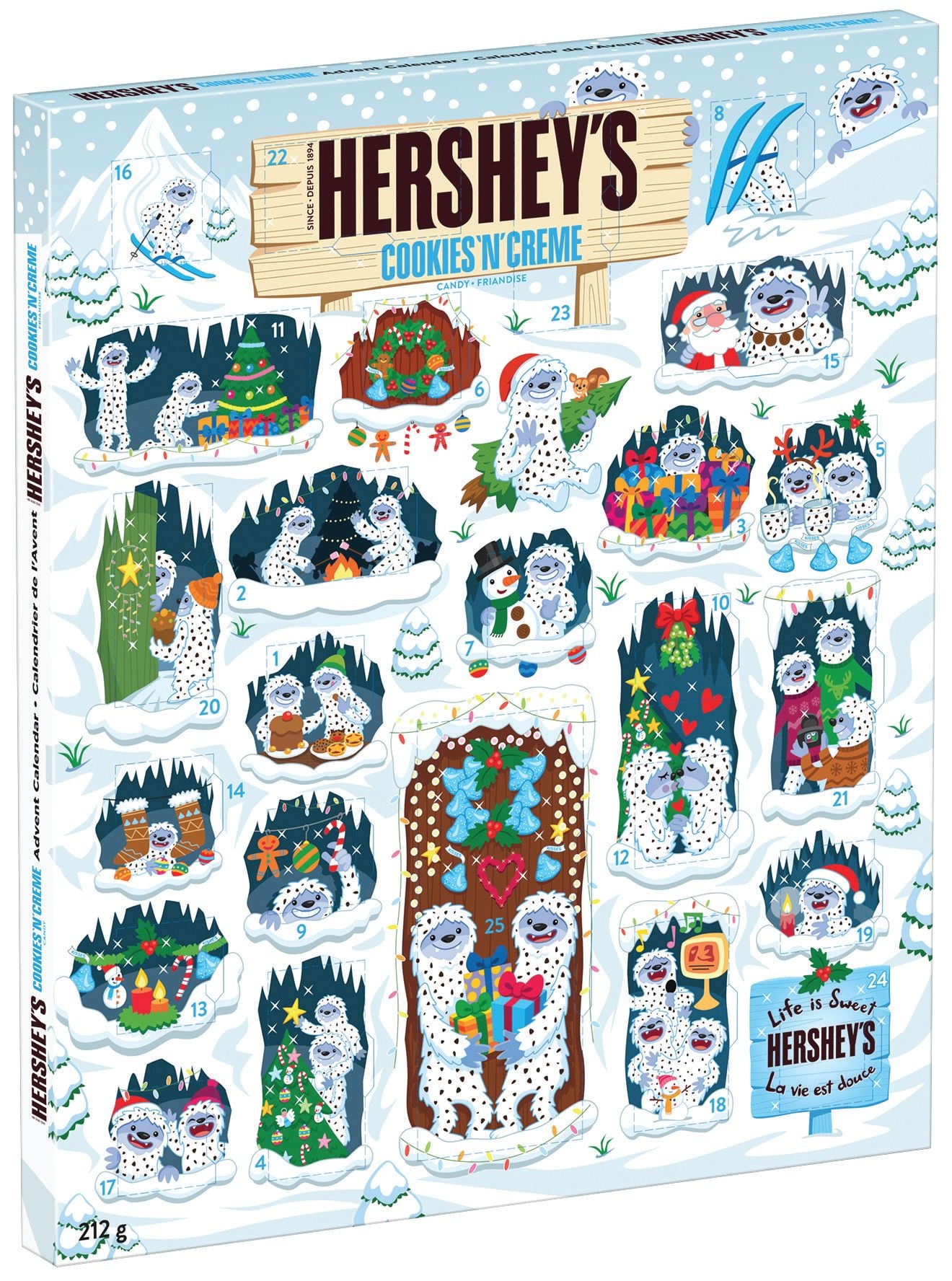 The Hershey’s Cookies & Cream Advent Calendar is a festive way to countdown to Christmas this year. Behind each of the 25 numbered doors is a delicious Hershey’s Cookies ‘N’ Crème candy to enjoy every day. This 212g calendar includes 16 mini Hershey’s Cookies ‘N’ Crème Kisses, 8 snack-sized Hershey’s Cookies ‘N’ Crème candy bars, and 1 full-sized Hershey’s Cookies ‘N’ Crème bar for Christmas day. With its fun, festive graphics, this calendar makes a great holiday tradition for the whole family to look forward to each December.