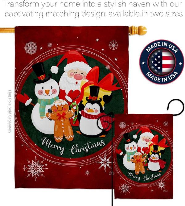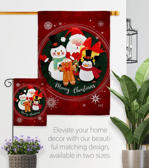 Holidays friends Garden Flag – Set Wood Dowel Winter Christmas Santa Marry Xmas Present Reindeer Season Wintertime Snow – House Decoration Banner Small Yard Gift Double-Sided Made In USA 13 X 18.5