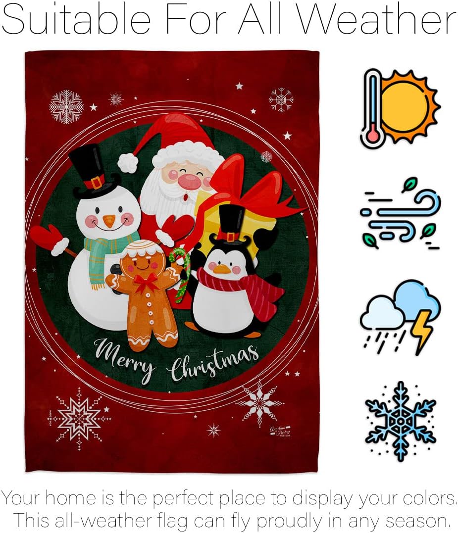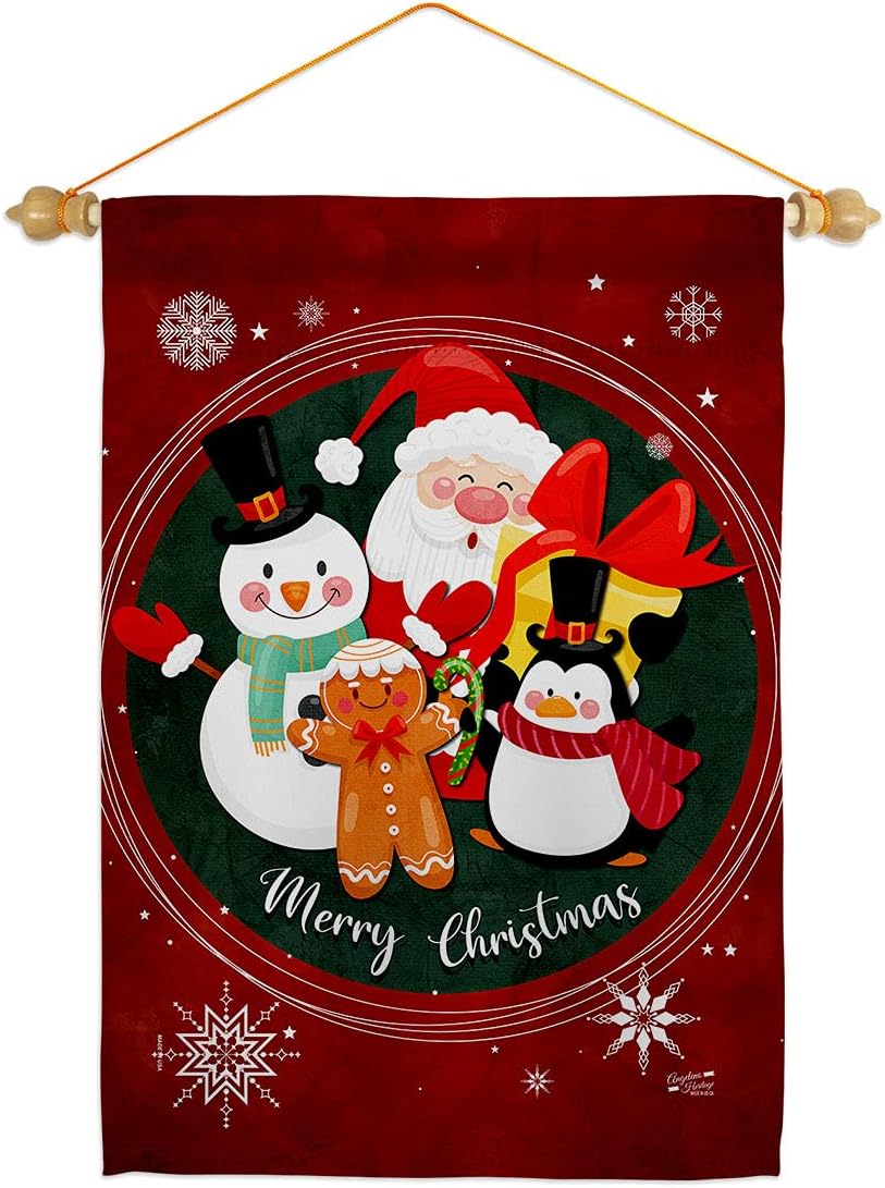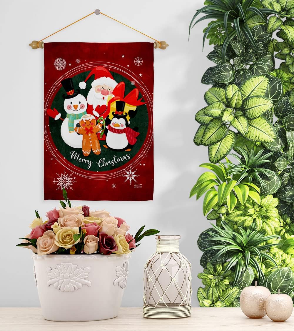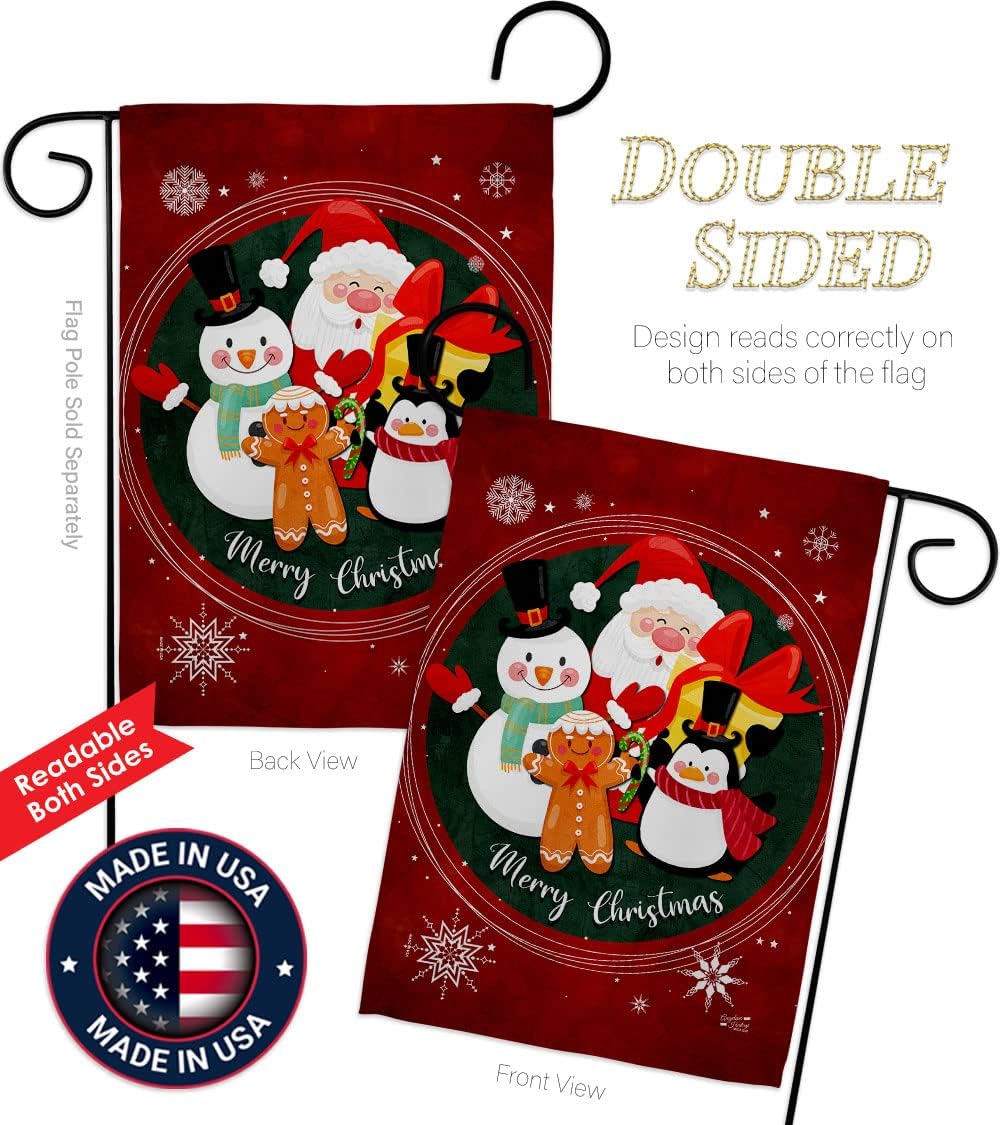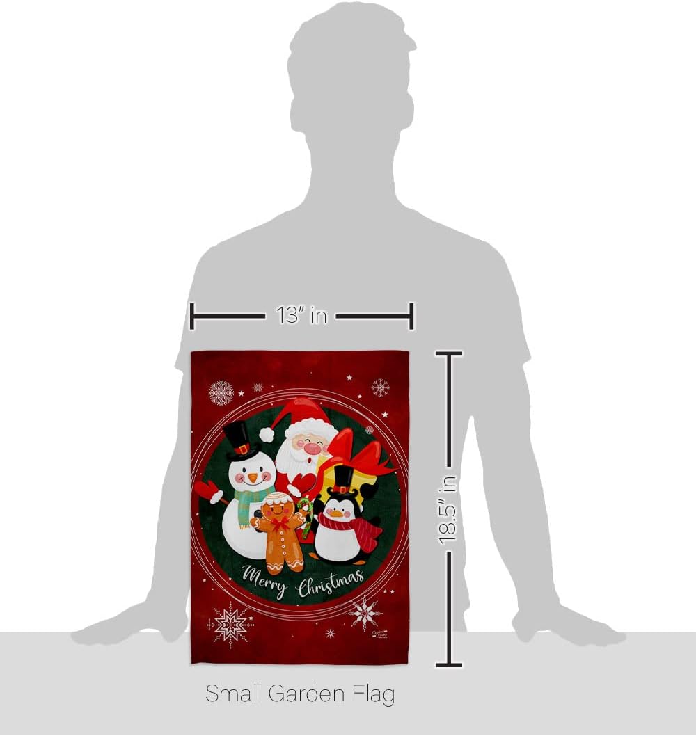 Holidays friends Garden Flag – Set Wood Dowel Winter Christmas Santa Marry Xmas Present Reindeer Season Wintertime Snow – House Decoration Banner Small Yard Gift Double-Sided Made In USA 13 X 18.5