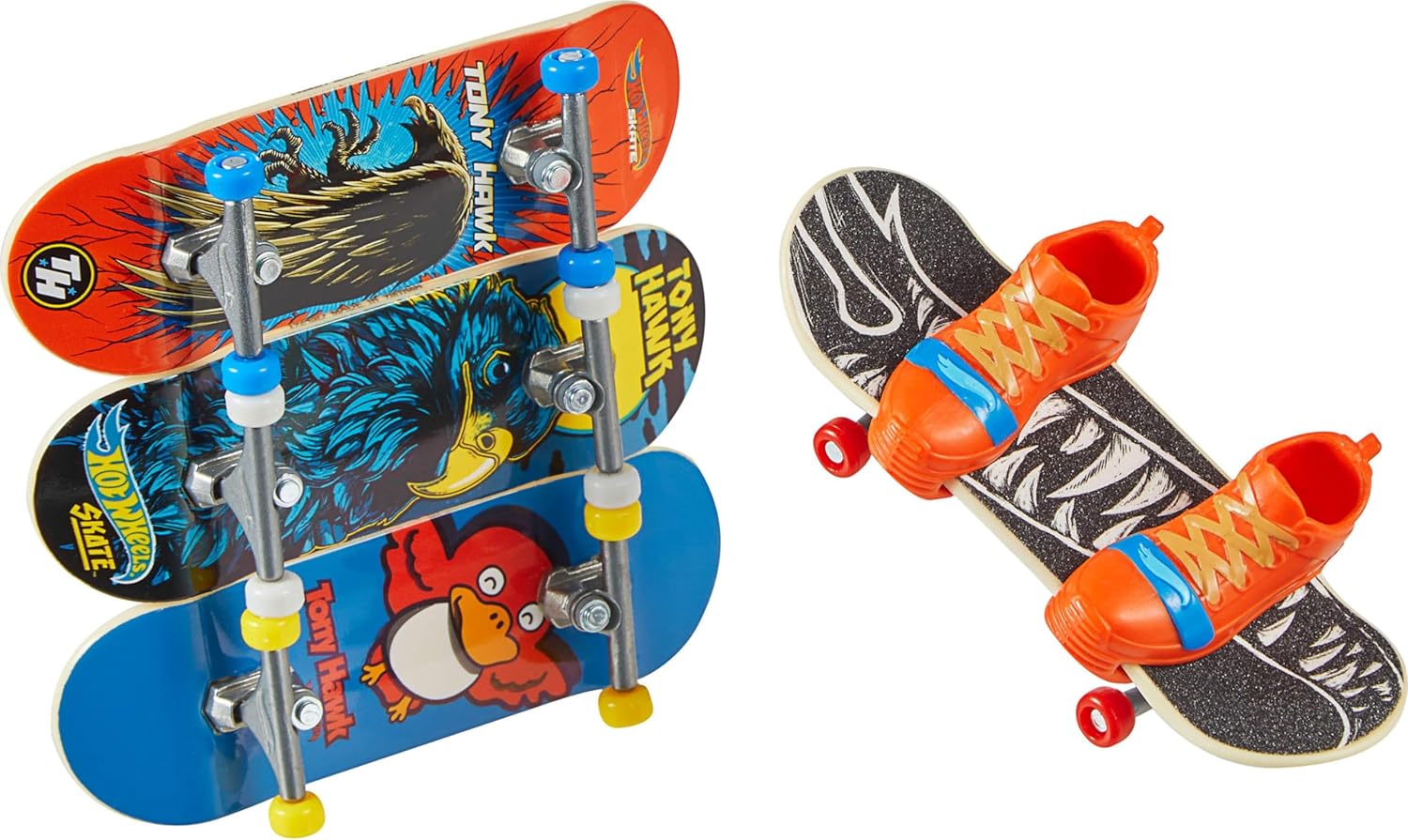 - The Hot Wheels Skate Multipack features 4 fully assembled fingerboards created in collaboration with iconic skateboarder Tony Hawk plus 2 pairs of cool skate shoes.