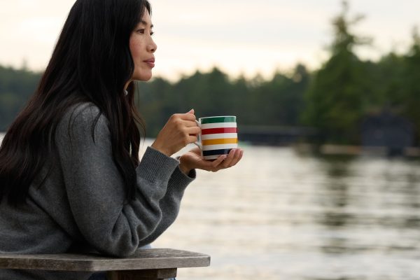 Enjoy coffee, tea or cocoa in style with this Hudson’s Bay Stripes™ Classic Mug. Featuring the iconic Hudson’s Bay Stripes, this white mug blends function with over three centuries of Canadian tradition. It’s ideal for your morning drink ritual or a meaningful Christmas gift for your loved one.