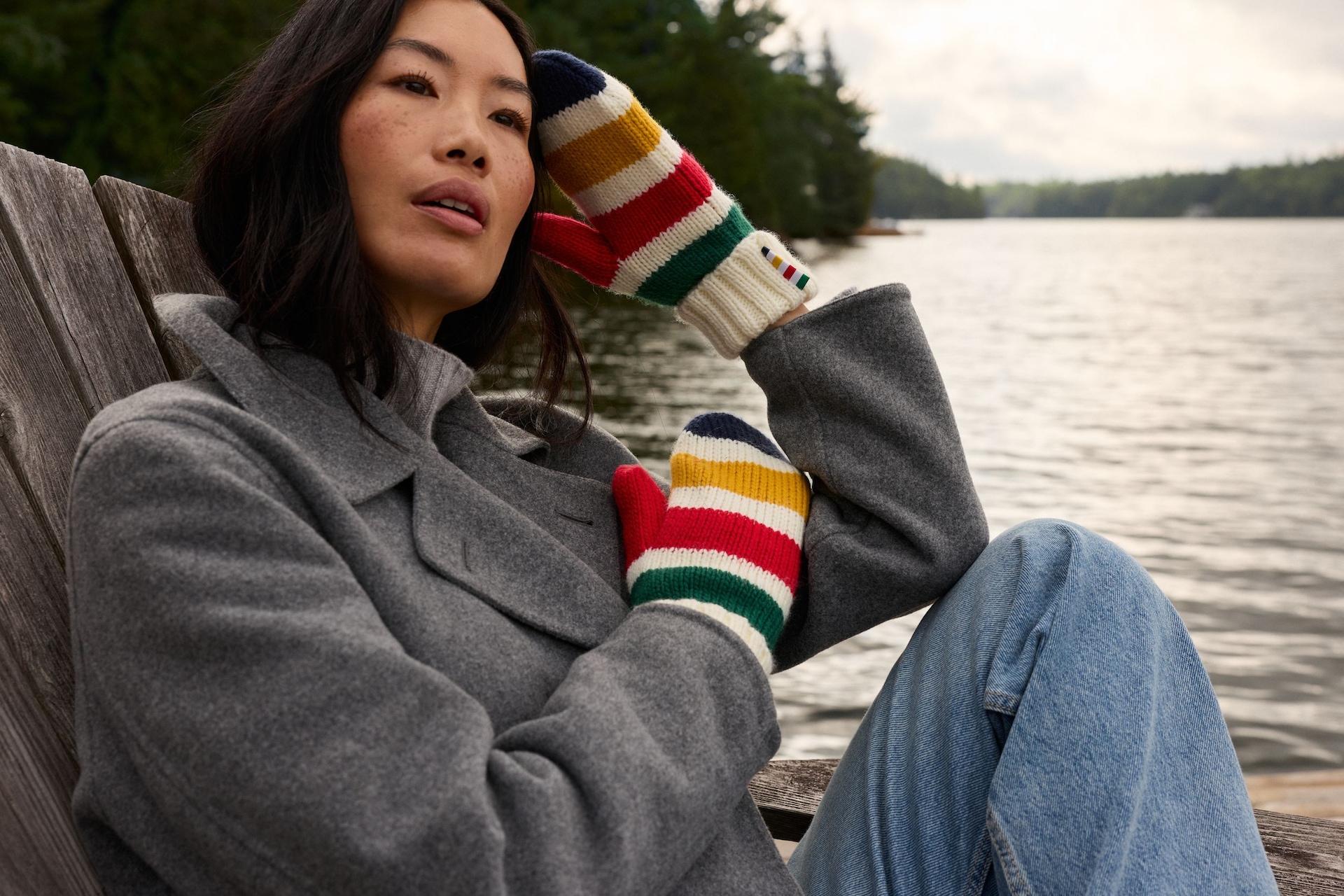 Keep your hands warm while celebrating heritage with these Hudson’s Bay Stripes™ Mittens in white. Featuring the iconic Hudson’s Bay Stripes, these mittens offer both style and comfort. Available in assorted sizes for the whole family, they make perfect holiday presents and are ideal for daily use during the winter season.