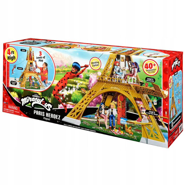 A true replica of the famous Parisian monument in a child-sized format! An incredible, never-before-seen size to bring the adventures of Ladybug, Cat Noir, and all the Miraculous heroes to life! Over 40 accessories – Multiple levels like the real tower, and different areas house shops: a bookstore, a bakery, an ice cream parlor, and an art shop. And with over 40 accessories, you can play out all these areas of life just like in the Miraculous series. This deluxe Eiffel Tower playset is suitable for children aged 3 and up