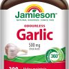 Jamieson Odourless Garlic 500 mg, Supports Heart Health, and Provides Immune Support. Non-GMO, Gluten-Free, 300 Softgels, Proudly Canadian