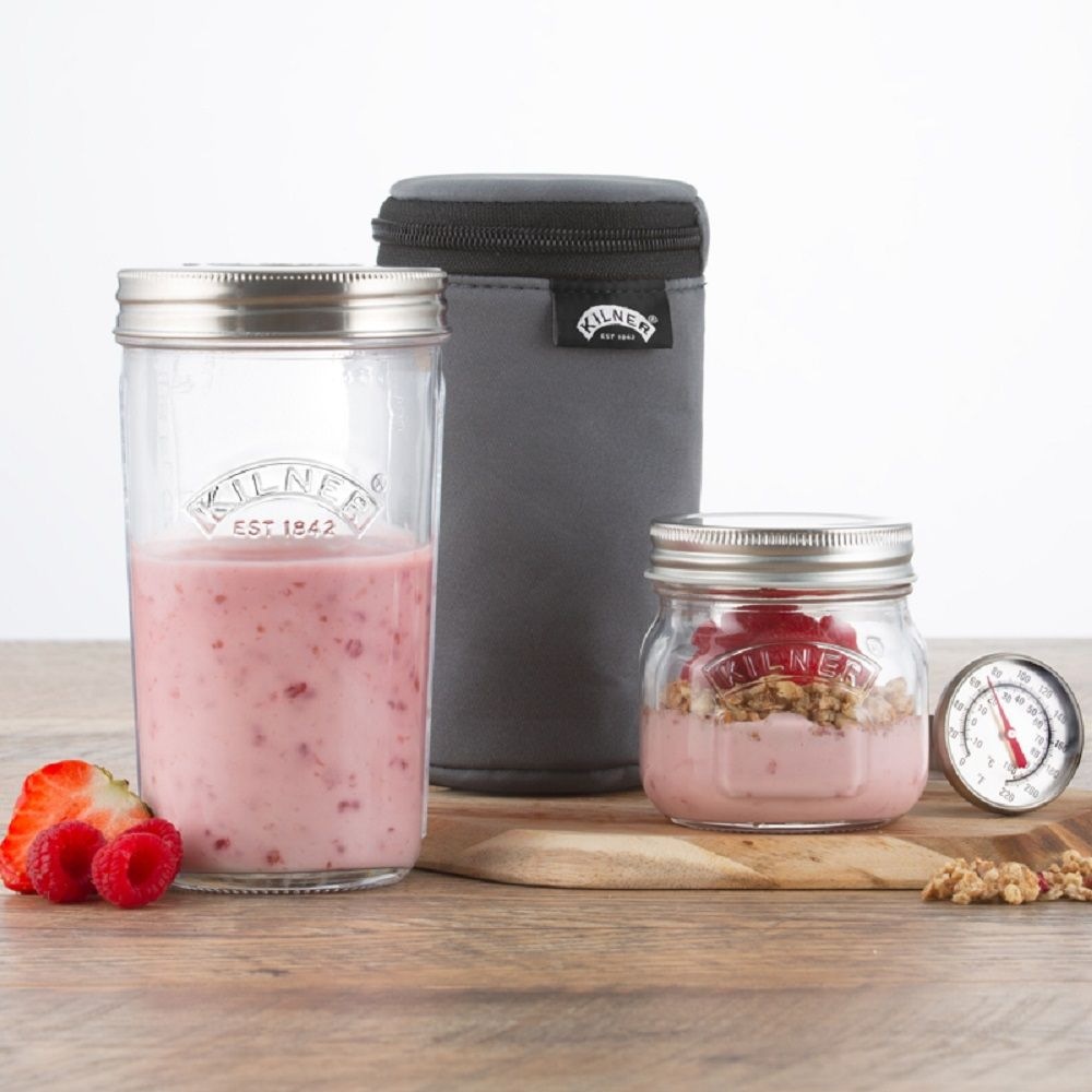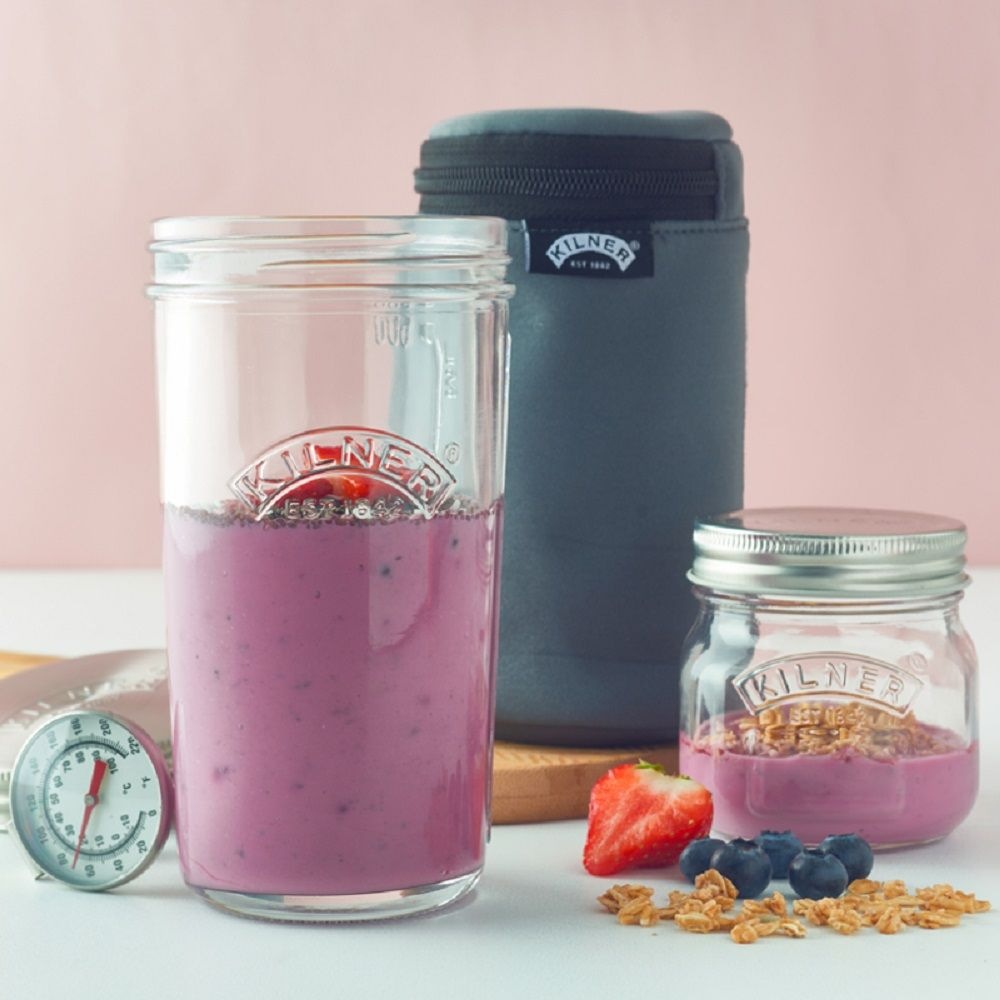 The Kilner® Yogurt Making Set is a game-changer for whipping up fresh, delicious dairy and plant-based yogurts right in your own kitchen. This glass yogurt making kit includes everything you need – 500ml and 250ml wide-mouth jars with stainless steel lids, a neoprene insulating pouch to maintain temperature, and a handy stainless steel thermometer. The included instructions and recipes make it a breeze to become a yogurt-making pro. Whether you’re looking to save money or simply want more control over your ingredients, this Kilner® yogurt making set is the ideal solution.