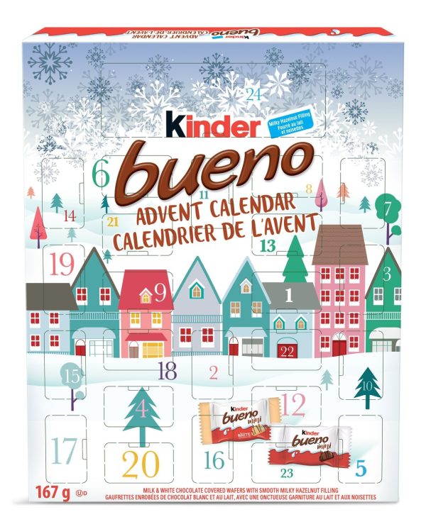 This Kinder Bueno Advent Calendar offers a unique assortment of 23 Kinder Bueno Minis and 1 Kinder Bueno Bar hidden behind each window. Indulge in the irresistible taste of Kinder Bueno’s chocolate-hazelnut combination as you countdown to the holidays with this festive and delicious Advent calendar.