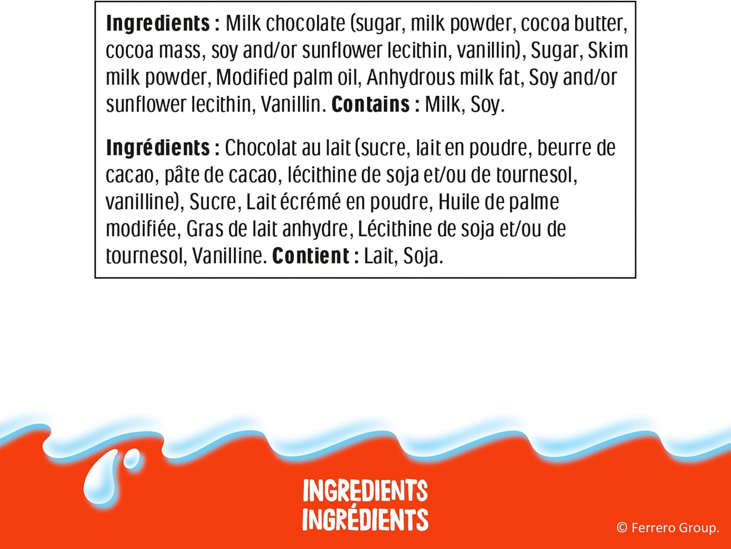 - MILKY DELICIOUSNESS: Coated with smooth milk chocolate that melts in your mouth, these KINDER CHOCOLATE/CHOCOLAT Mini bars have a delicious milky filling and are made without artificial colours or preservatives.