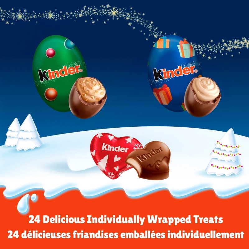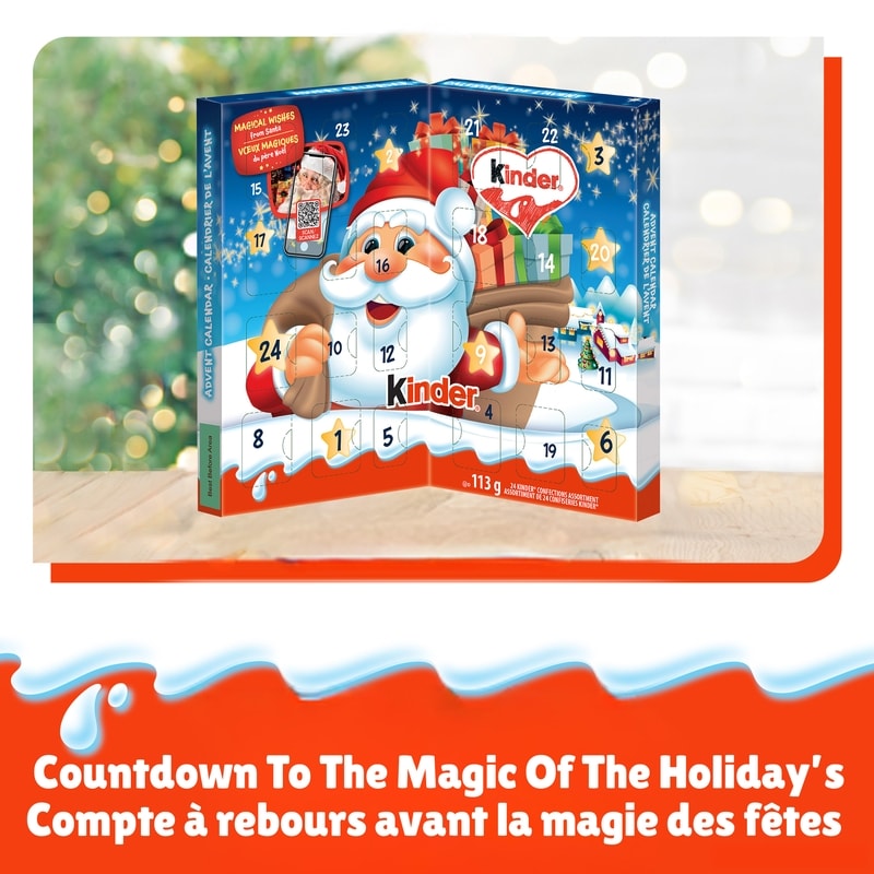 - HOLIDAY COUNTDOWN: Countdown to the magic of the holiday season with our KINDER Advent Calendar. The countdown to December 25th is even more fun this year, with a surprise KINDER treat behind every door.