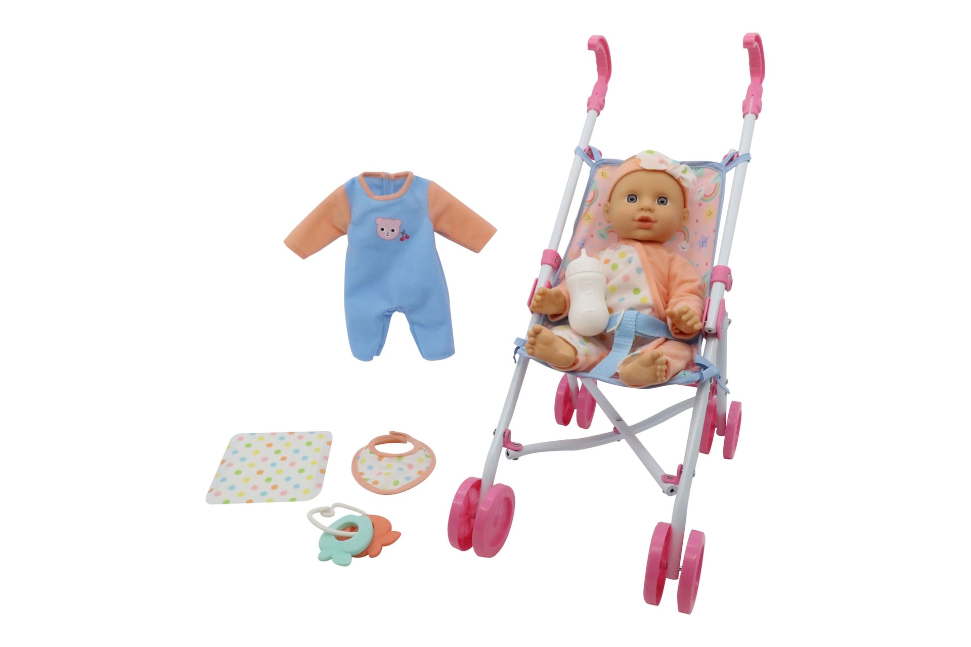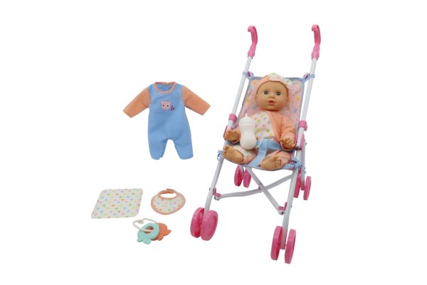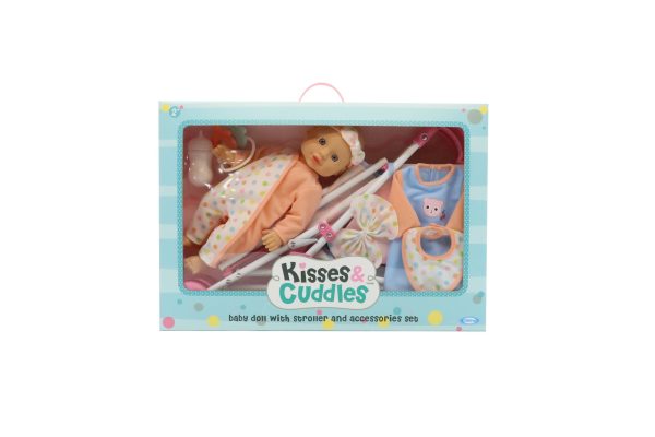 Kisses & Cuddles Baby Doll Toy Stroller Set, 12-in Doll with with Strollers & Accessories, Ages 3+