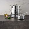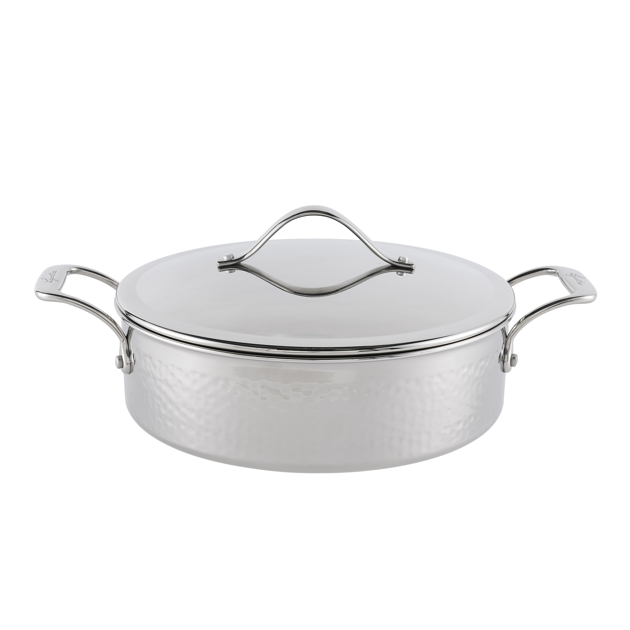 - The 5-ply clad construction is crafted with three alternating layers of aluminum sandwiched between two layers of stainless steel that transfer heat evenly from base-to-rim for greater heat stability and consistent cooking results