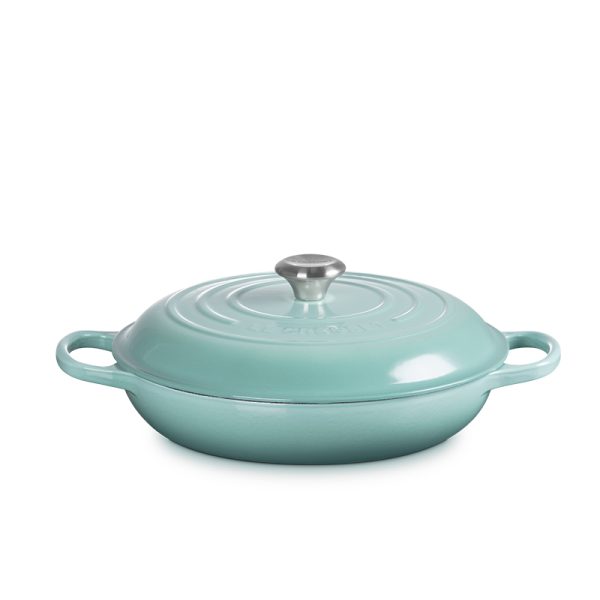 The Braiser is built to last, thanks to a chip-resistant enamel interior and exterior. Its wide base provides a consistent heat source, offering superior heat retention to ensure even slow cooking.