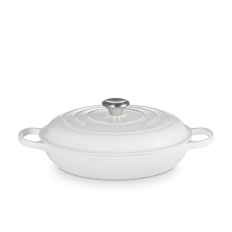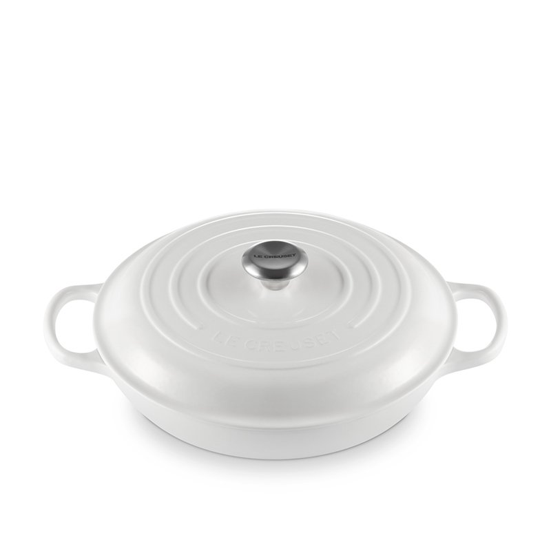 The Braiser is built to last, thanks to a chip-resistant enamel interior and exterior. Its wide base provides a consistent heat source, offering superior heat retention to ensure even slow cooking.