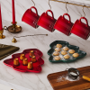 Set a festive holiday table with the Christmas Tree Plate. Its sloped edges keep food neatly in place, and the wide rim makes serving effortless. Made from premium stoneware, the plate features a vibrant glaze that is easy to clean, dishwasher-safe, and resistant to chips, scratches, and stains. The dense stoneware prevents moisture absorption, helping to avoid cracking or rippling, and the nonporous enamel resists marks from metal utensils while allowing food to release easily for quick cleanup.