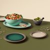 Our Set of 4 Classic Dinner Plates are perfectly suited for serving main courses and your favourite family-style recipes in style. This 27 cm Classic Dinner Plate features a recessed base to contain liquids and a refined rim with our store’s signature raised rings.