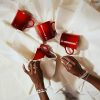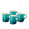 The set is available in a number of bold colors and includes embossed lettering and rings around the base, perfect for serving coffee, tea, and a variety of other beverages in style. This set is ideal for a family of four or when hosting another couple.