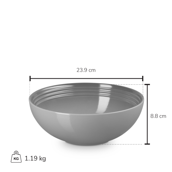 Crafted with durable stoneware, our Classic Serving Bowl is built to last everyday use and is resistant to flavour and odour absorption. Its classic design features our store’s distinctive rings and a smooth interior glaze.