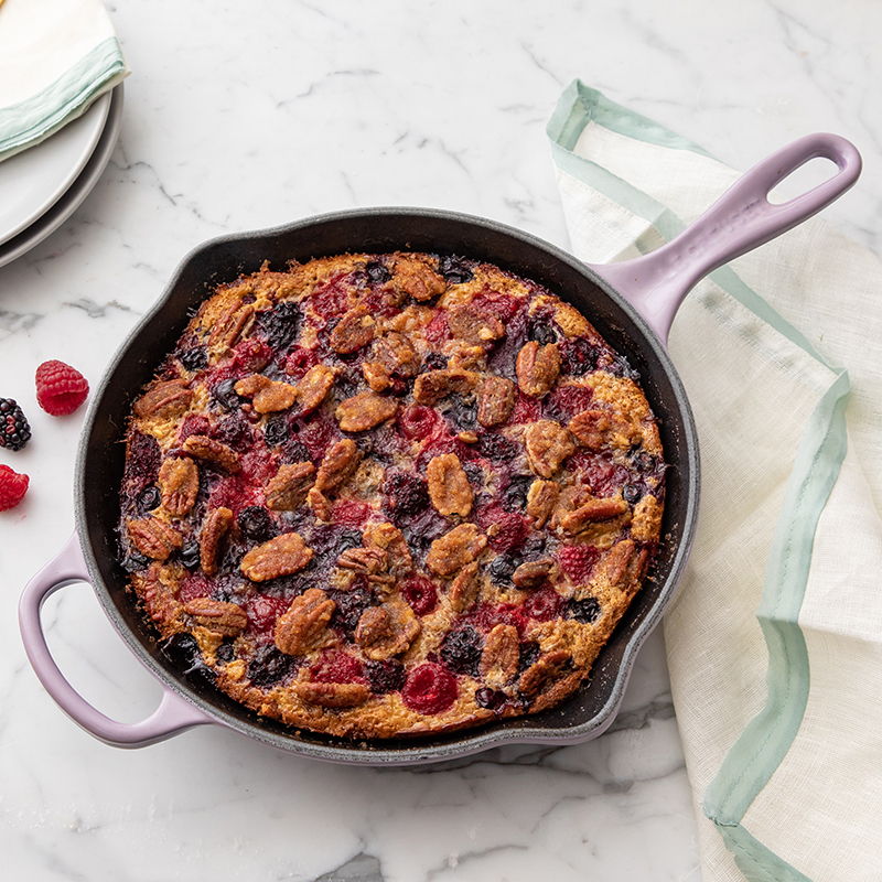 Chefs from all over the world attest to the cast iron skillet’s unique ability to produce the perfect balance of a crispy golden crust and a soft, fluffy interior when baking cornbread, cookies, and other desserts. Available in two sizes (26 cm and 30 cm) and a range of colours.