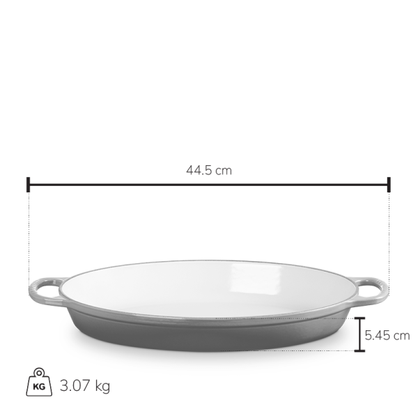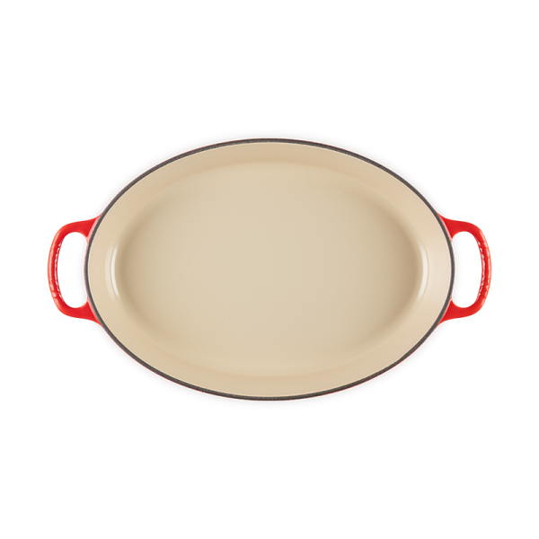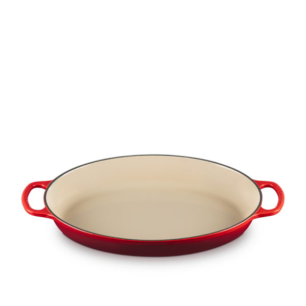Crafted from enamelled cast iron, the Oval Baker delivers exceptional heat distribution and retention to lock in flavour and keep dishes warm or cold at the table. Its light-coloured, smooth interior enamel allows easy monitoring of cooking progress and minimizes sticking and staining, while the durable exterior enamel resists dulling, chipping, cracking, and staining. Ready to use straight from the box with no seasoning required, it features ergonomic handles for easy lifting and is compatible with all cooktops and oven-safe up to 500°F (260°C). Dishwasher safe, the Oval Baker combines everyday practicality with timeless our store performance.