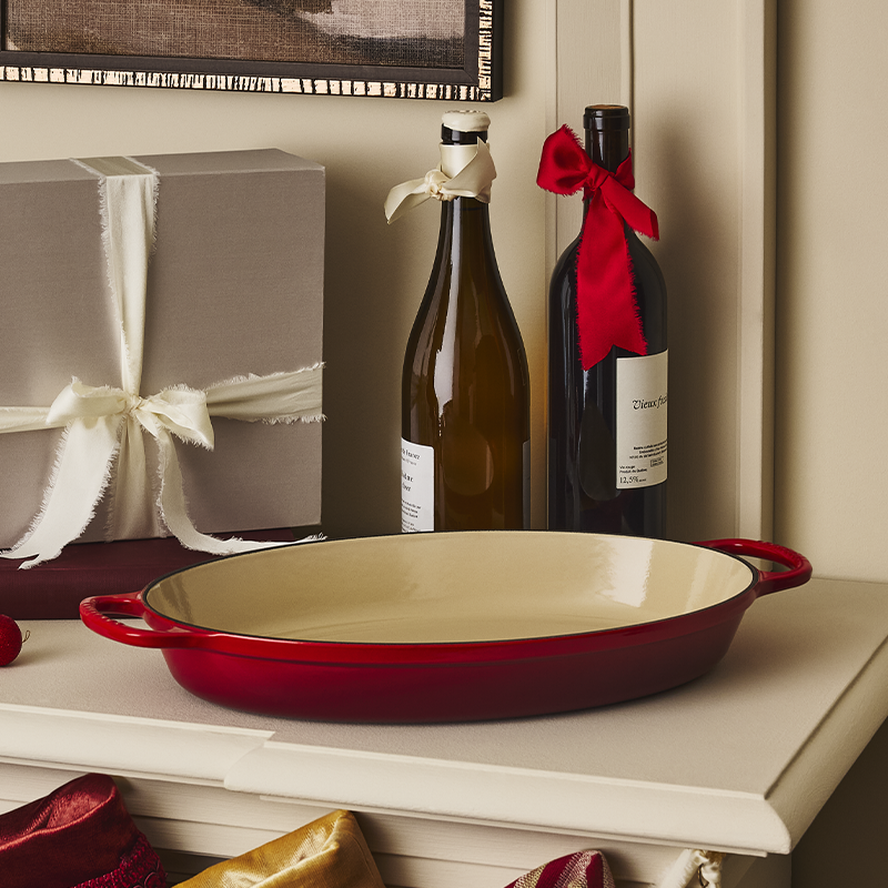 The Oval Baker is perfect for roasting, baking, casseroles, side dishes and more, or as a buffet dish for serving and entertaining. Its shallow, low-profile design allows heat to circulate around the food for optimal browning and crisping, while the longer, oval shape is ideal for pork roasts, whole chickens, sides of salmon, and roasted vegetables. Finished with a colourful exterior and wide loop handles, it’s perfect for cooking and serving from stove to oven to table.