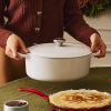 The Oval Dutch Oven is the perfect shape for preparing larger roasts and poultry dishes, accommodating recipes of all sizes. Its elongated shape offers chefs ample surface area, making it ideal for larger cuts of meat or poultry, and ensuring food is exposed to a consistent heat source for even cooking.