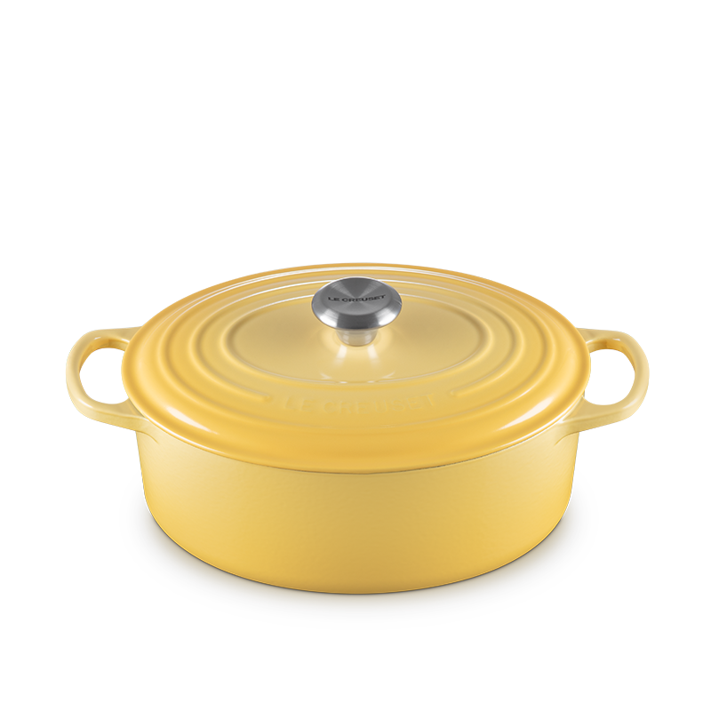 The Oval Dutch Oven is the ideal piece of cookware for preparing family meals and comes in two sizes: 4.7 L (ideal for 3-4 servings) and 6.3 L (ideal for 5-6 servings). Its chip-resistant enamel exterior ensures it can withstand everyday use. Each piece is cast individually in sand molds and hand-inspected by French artisans.